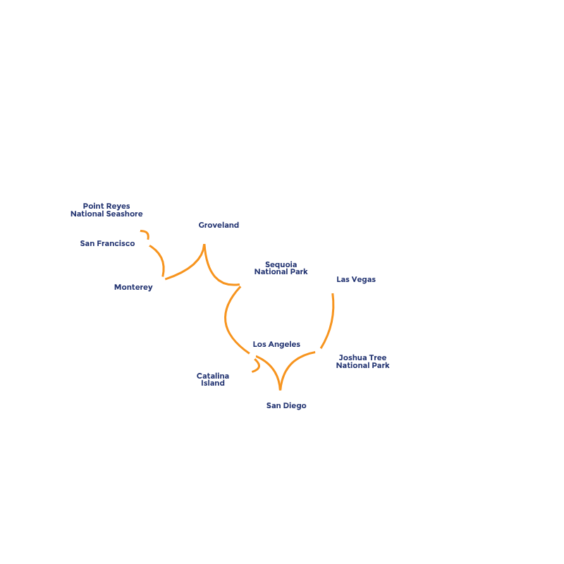 - Iconic cities: San Francisco, Los Angeles, San Diego and Las Vegas — each with its own energy, history and unique atmosphere.