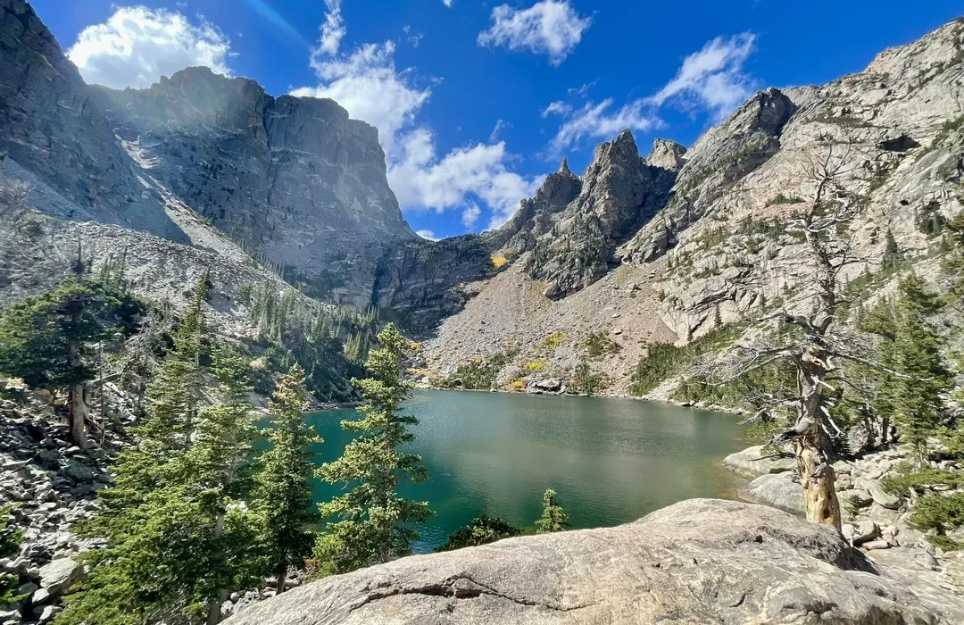 The park reveals the full diversity of its high-altitude environments. Beyond the treeline, the scenery changes dramatically: vast wind-sculpted alpine plateaus, steep walls dropping toward emerald-colored glacial lakes, and iconic summits such as Longs Peak, the highest in the park. This region protects one of the largest alpine expanses in the United States—an exceptionally rare ecosystem where only low grasses, lichens, and a few hardy flowers survive the extreme conditions.