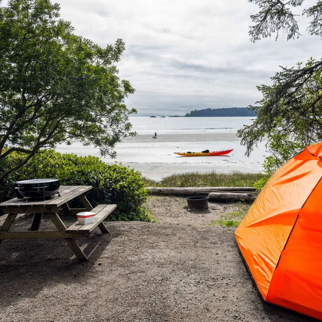 Sleeping in a tent at a campground by the ocean